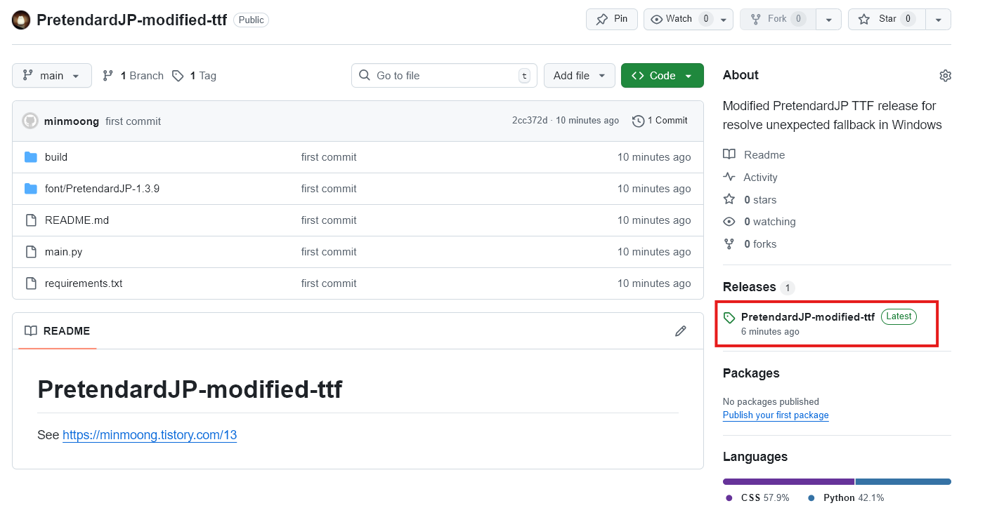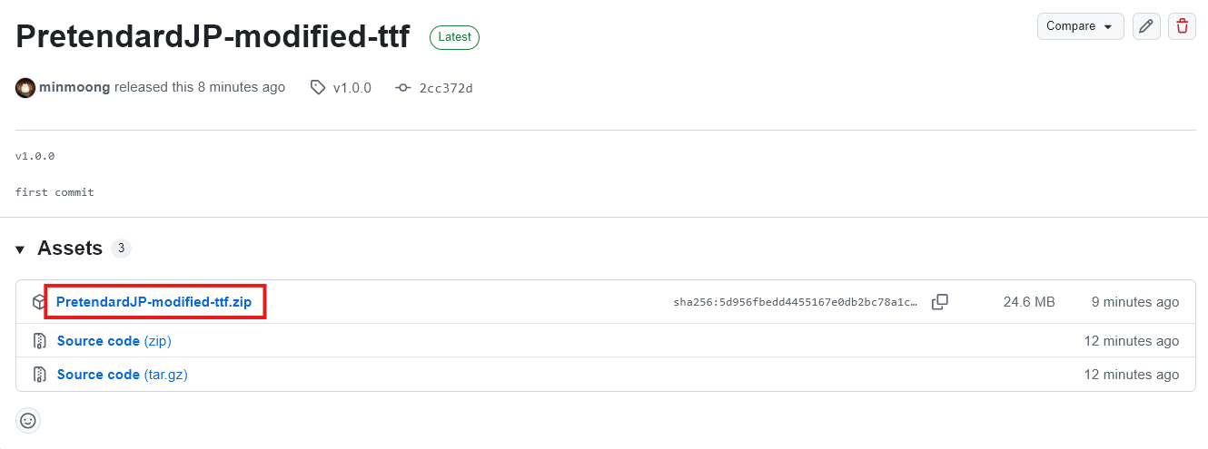 링크에 들어가보면 아래와 같이 Releases에 수정된 TTF 파일들을 업로드 해두었습니다.