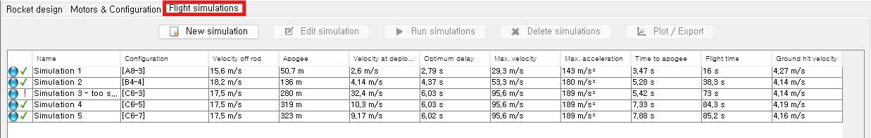 OpenRocket 프로그램 시뮬레이션 기능 사용법 본문