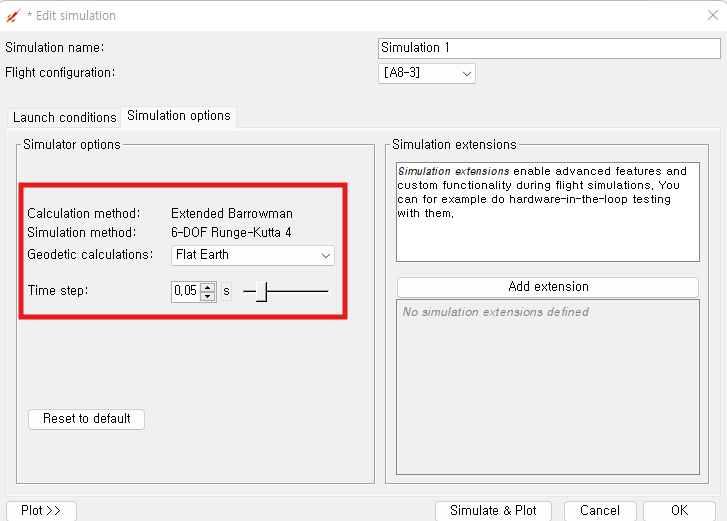 이제 5개의 시뮬레이션 중 하나를 선택한 다음 'Edit simulation' 버튼을 눌러 시뮬레이션 설정 창을 다음과 같이 띄웁니다.